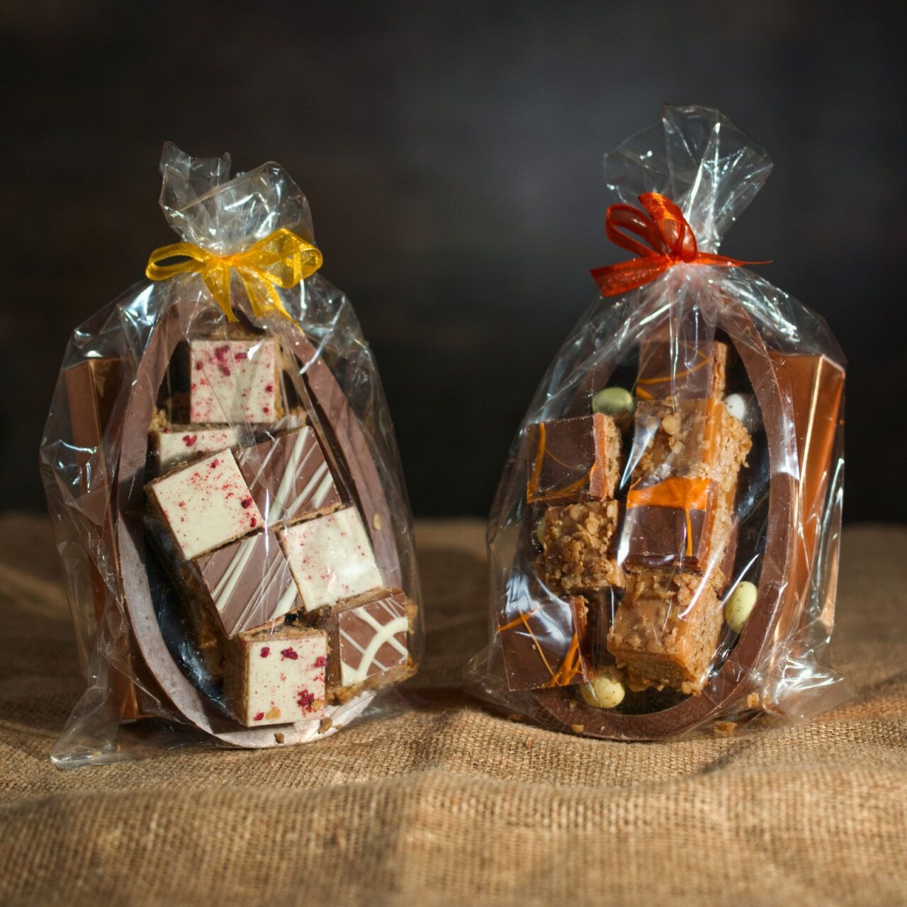 This Chocolate Orange and Salted Caramel Flapjack Easter Egg features a thick Belgian chocolate half-egg filled with mini chocolate eggs and generous chunks of flapjack. Inside, you’ll find a mix of Chocolate Orange Flapjack and Salted Caramel Flapjack pieces, combining bright citrus notes with smooth caramel sweetness for a satisfying Easter treat.