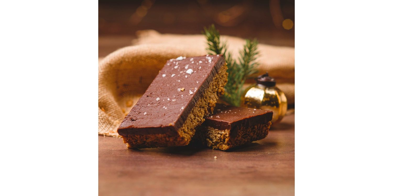 Our vegan flapjack base, topped with thick and indulgent chocolate fudge. Made with only vegan ingredients.