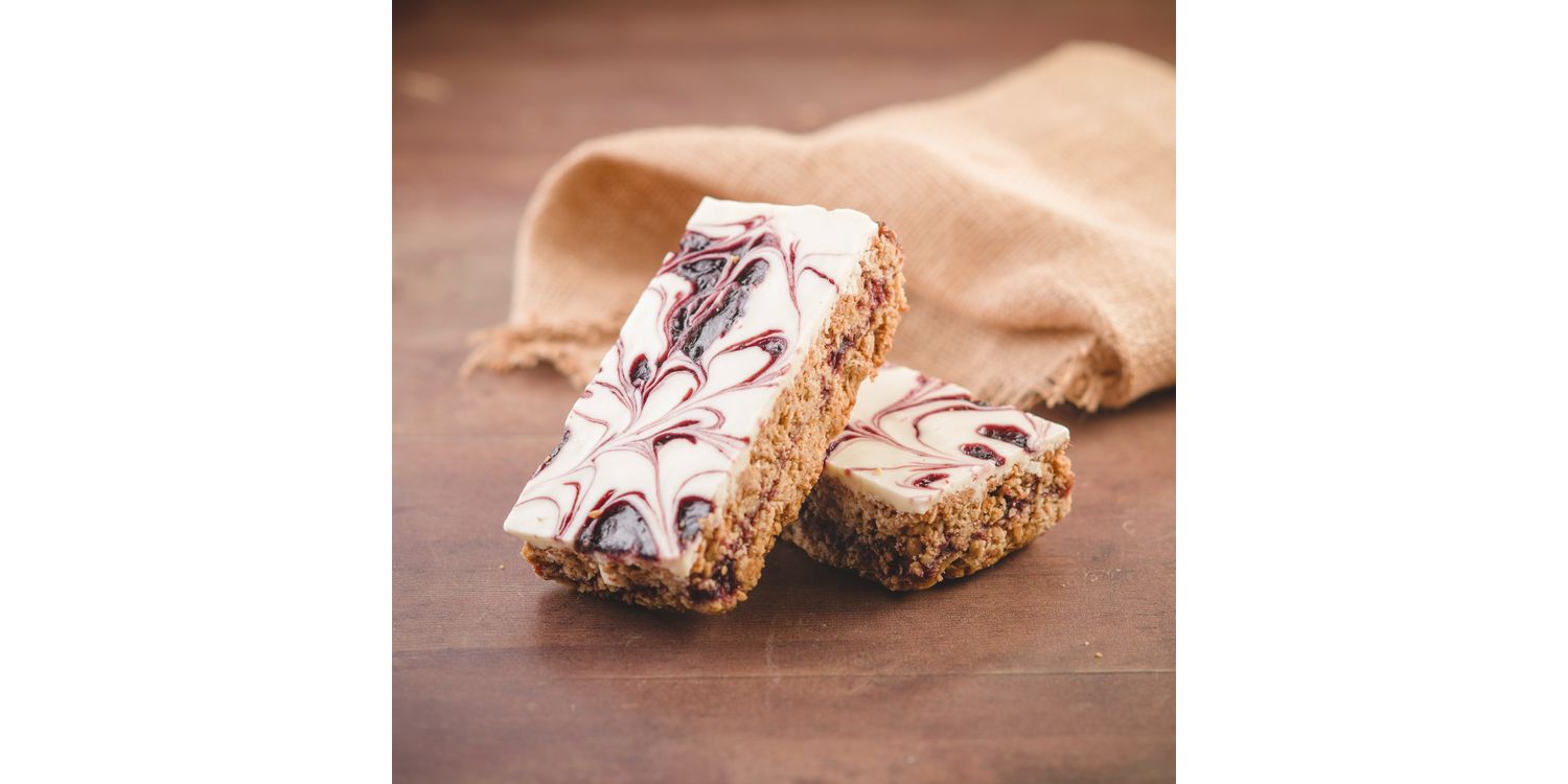 We have then finished this deliciously fruity and moist flapjack with a generous yoghurt topping and blackcurrant swirl for decoration. This award-winning flapjack is the perfect indulgent treat, and with gift wrapping available, this would also be a wonderful gift for any flapjack fan.