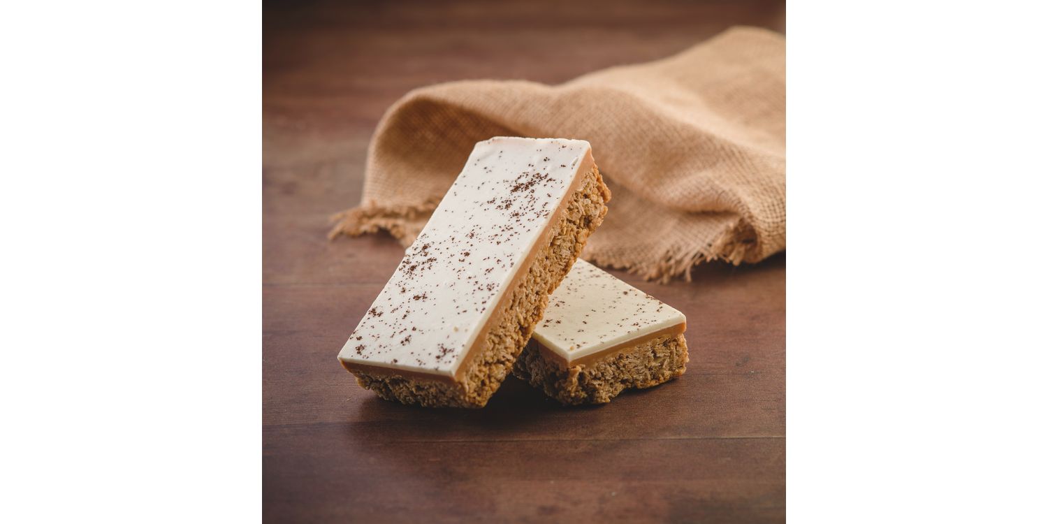 Handmade in Devon with only the finest locally sourced ingredients, our Caramel Latte Flapjack is the ultimate delicious treat. Made with an organic espresso ground coffee incorporated into the buttery flapjack, this is topped with creamy fudge and a generous white chocolate layer.